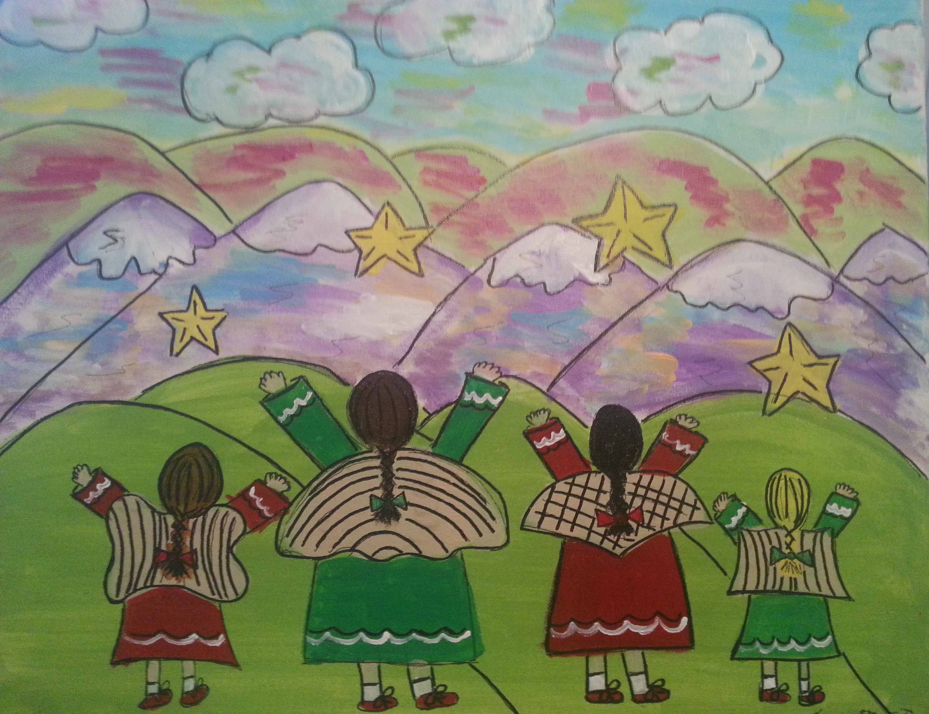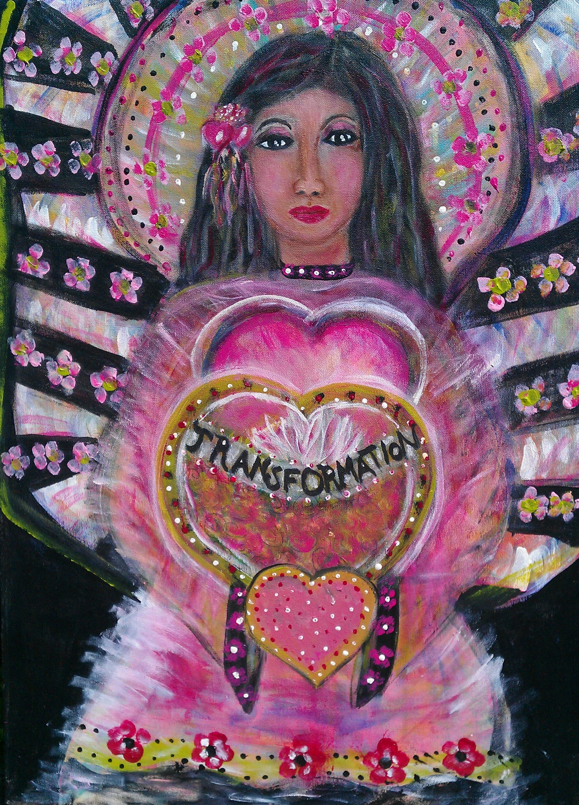 Mom started painting about 10 years ago–mostly of angels or Madonnas. I loved her whimsical, vibrant style.